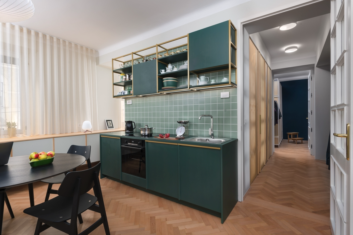 V letu 2022 smo po načrtih arhitektov Kombinat d.o.o. izdelali zanimivo opremo za prenovljeno meščansko stanovanje na Pražakovi ulici v Ljubljani. Oprema je kombinacija različnih materialov, pri čemer najbolj izstopajo kovinsko ogrodje pohištva ter kombinacija intenzivnih in nevtralnih barv. Projekt je podrobneje predstavljen na portalu revije OUTSIDER z dne 14. junija 2023.
