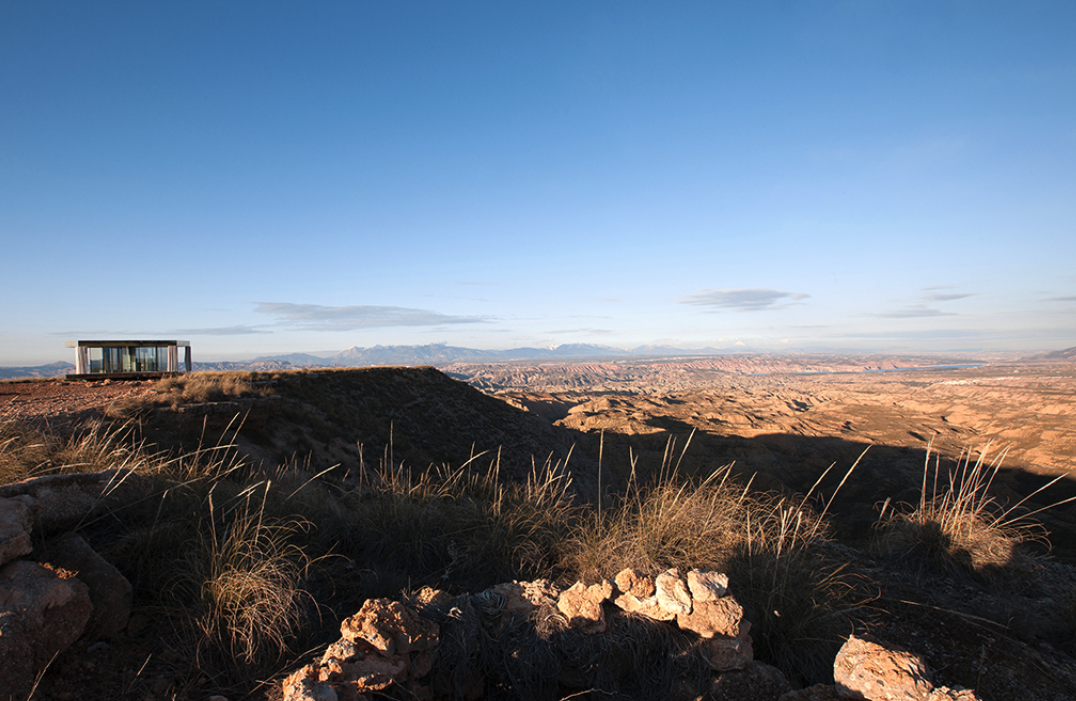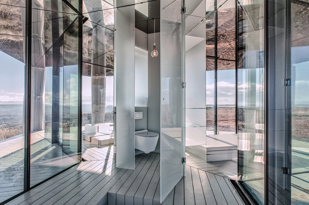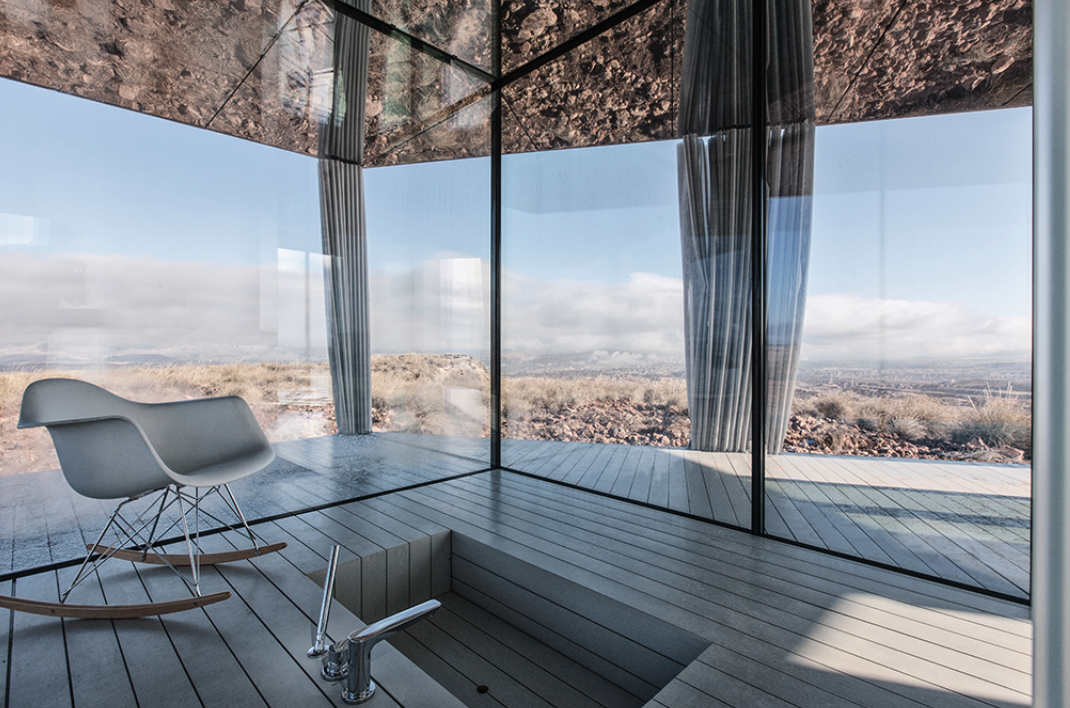 Steklena hisa v puscavi, ki smo jo izdelali za podjetje Guardian Glass, so oblikovali v slovenskem podjetju OFIS arhitekti v sodelovanju s statiki AKT ll iz Londona in klimatskimi inzenirji Transsolar iz Nemčije , ustvarja udoben življenjski prostor z minimalno porabo energije. Namen je ustvariti udoben bivalni interier, ki ga obkroža ekstremno puščavsko okolje. Koncept izziva termične in strukturne zmožnosti stekla. Steklo ni le element fasade temveč statični element, zunanja opna, senčilo ter izolacija. Oblika objekta je odgovor na lokalne puščavske pogoje, ki smo jih spremljali v nacionalnem parku Gorafe v Andaluziji. Koncept je zasnovan pasivno in temelji na obnovljivih energetskih virih, hkrati pa fasadna opna ostaja popolnoma transparentna in omogoča čudivit, neprekinjen 360° razgled na okolico.