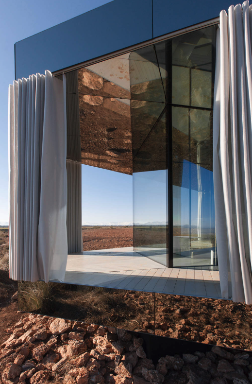 Objekt uporablja vertikalne steklene plošče kot edino konstrukcijsko podporo, ki kljubuje močnemu puščavskemu vetru ter hkrati podpira veliko leseno streho. Steklo je termična ucinkovita troslojna zasteklitev, ki je premazana s skoraj nevidnimi premazi za zaščito notranjost pred soncem.